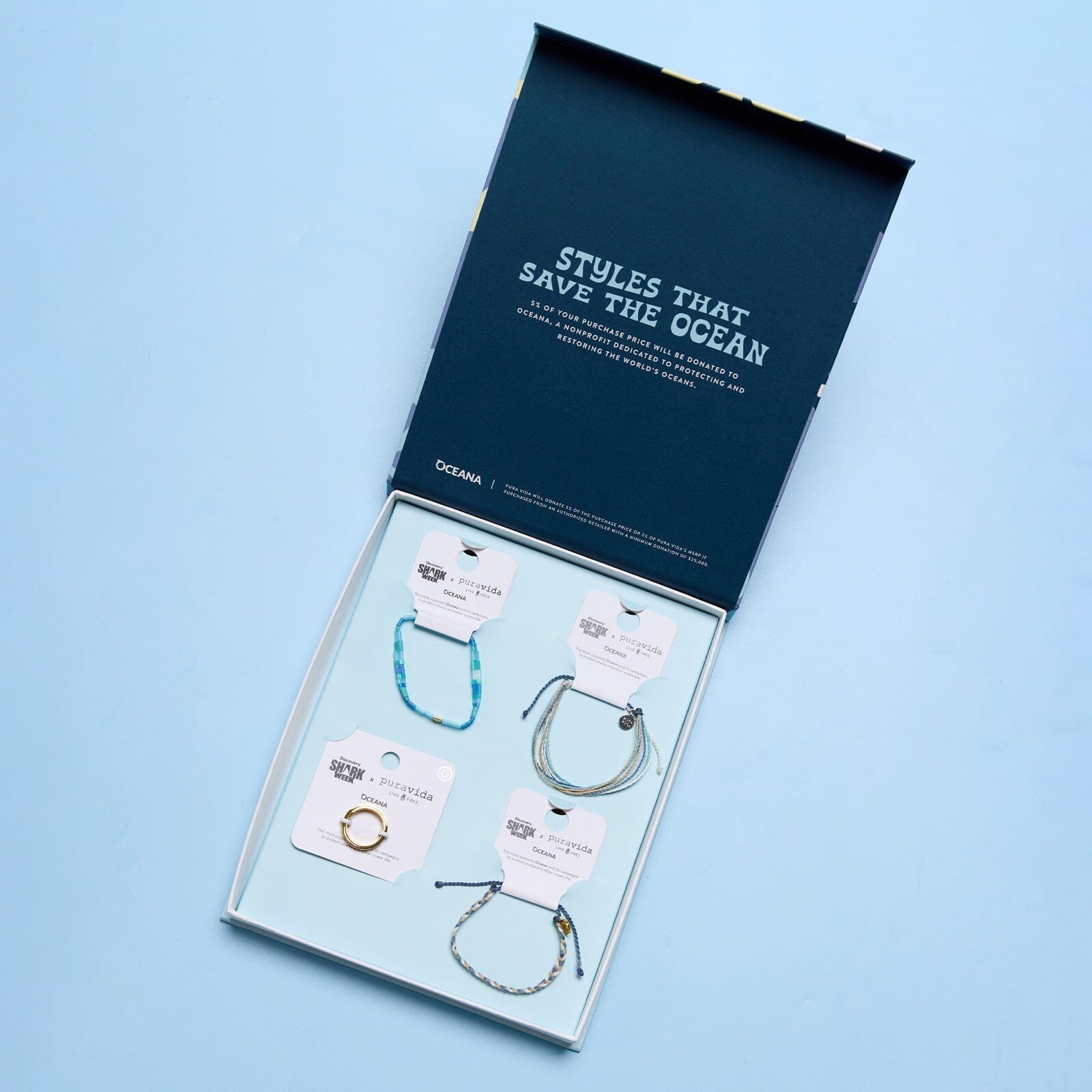 Made to store all your favorite Shark Week pieces and other PV styles, our Shark Week '24 Collection Box features a cool graphic design and is perfect for packing on all your summer vacays. For every box sold, Pura Vida will donate 5% of the purchase price ($25,000 minimum) to support Oceana’s campaigns to protect sharks and other ocean life.